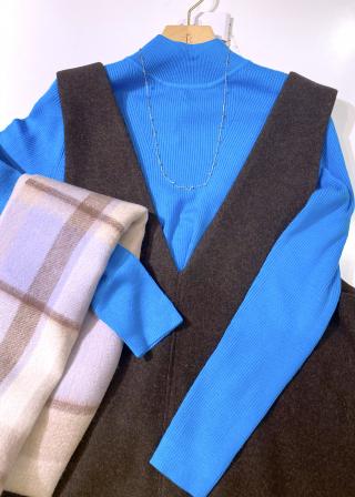・タートルプルオーバーを重ねてクラシカルに、フリルブラウスを重ねてガーリーなムードに。