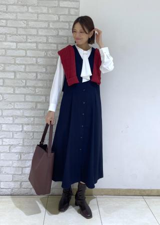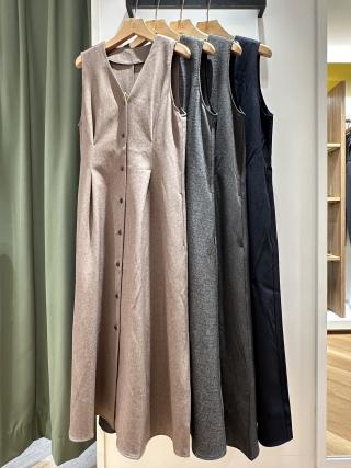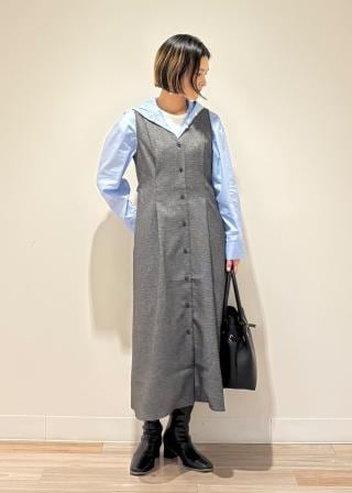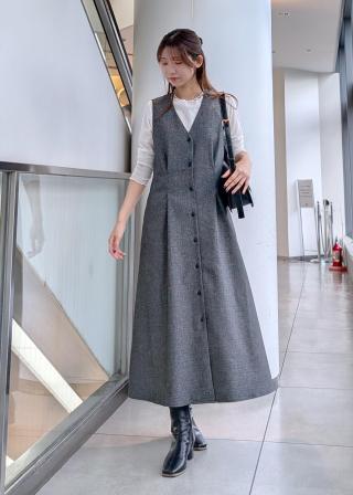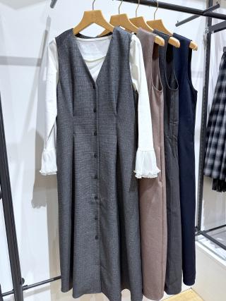 フロントボタンなので、ジレとしても着回しできる万能ワンピースです。