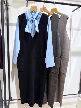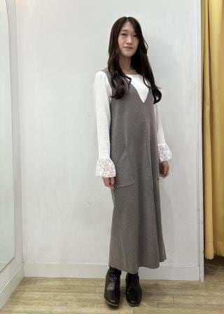 ・ストンと落ちるストレートシルエットのニットジャンパースカート。