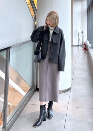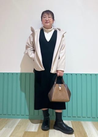 ・足もとはロングブーツを合わせるとエレガントさがアップ。