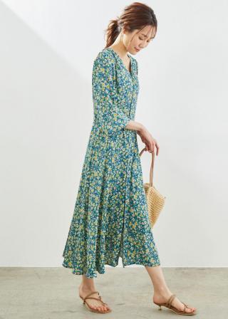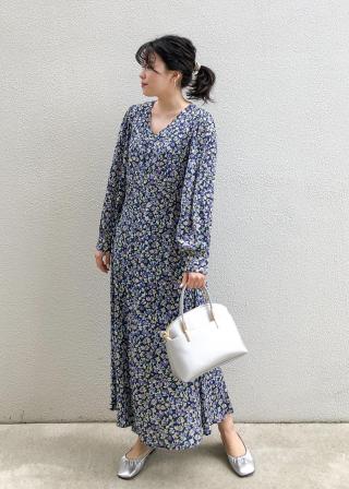 お花が華やかで目を引くデザインなので、1枚でワンピースとして着用しました。肌寒くなったらカーディガンを合わせて頂いたりパーカーを合わせたり、インナーを入れて羽織としても着用頂けるので着回し力抜群です!
