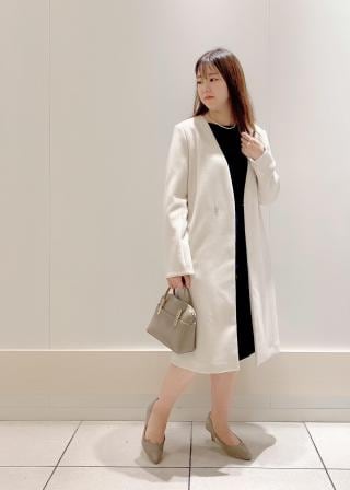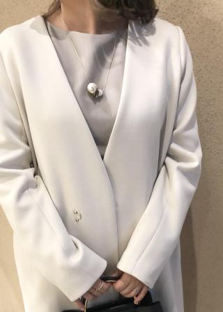 ・首元にスカーフを合わせたり、胸元にコサージュを添えたり、小物で華やぎをプラス。