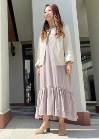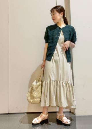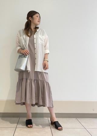 おすすめコーデ:1枚でサラッと着てもいいですし、シャツやカーディガン肩掛けもおすすめです。