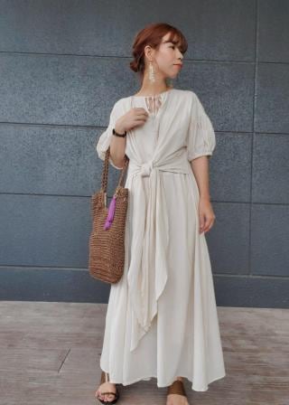 おすすめコーデ:1枚で可愛いデザインのワンピースなのでシンプルに1枚で着用して、大きめななウエストリボンを前で結んだり、背中で結んだり。。とアレンジするのがおすすめです。