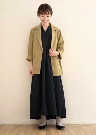 ・バックタック入りのふんわりシルエットで、ボディラインを拾わない一枚。
