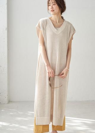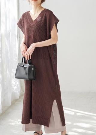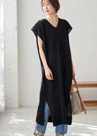 ・いつもの着こなしにプラスして、装いをブラッシュアップできるメッシュニットワンピース。