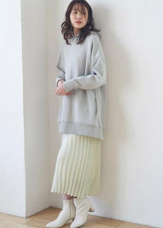 ・ストンとした落ち感のある素材なので、広がりにくく細身のシルエットに見せてくれます。