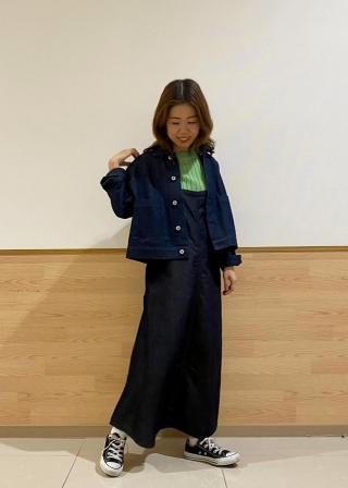 着心地:デニム生地ですが軽い素材感なので重みも感じずに着やすいです。