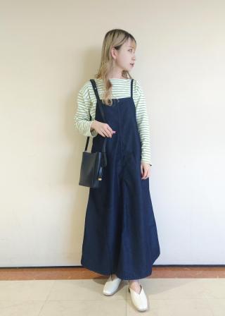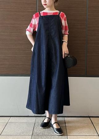・トレンドのレイヤードが楽しめるキャミソール型デニムワンピース。