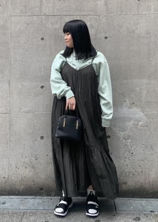 キャミワンピースの上からニットやスエット、パーカーなどレイヤードしてスカートとして着用するのもおすすめです◎