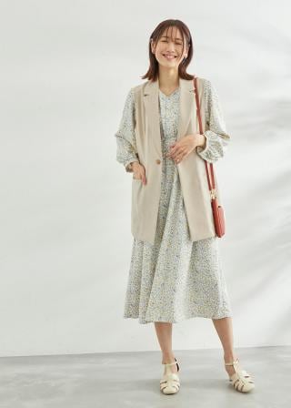 可憐に着こなす春の小花柄ワンピース。サスティナブル素材を使用。