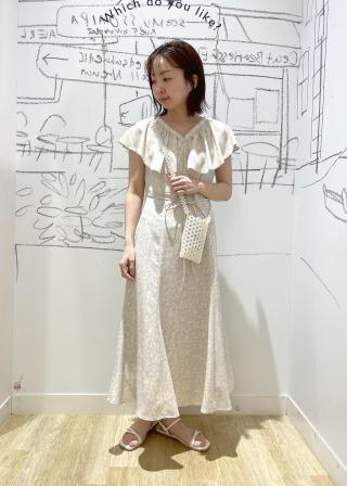 ・トップのラッフルデザインが華やかなロングワンピース。