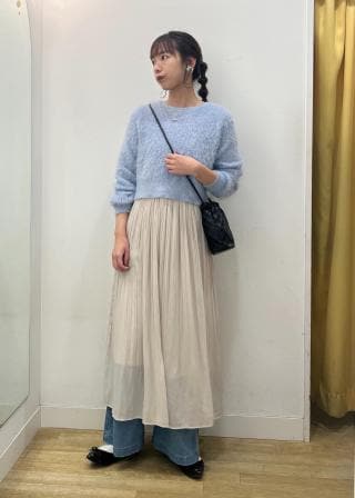 ・カジュアルなビッグサイズのニットを重ねても◎。