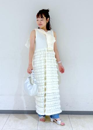・テレコ素材のトップスとフリル素材をドッキングさせたワンピース。