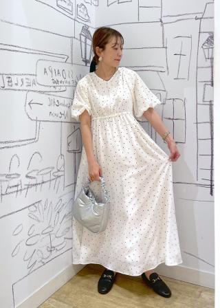 おすすめコーデ:pinoとコラボしたワンピースは1枚でサラッと着ていただいても可愛いデザイン性のあるワンピースです。