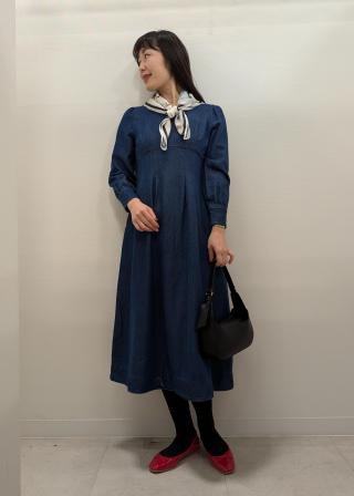 ・レディライクな袖付きワンピースを、デニム素材でほどよくカジュアルダウン。