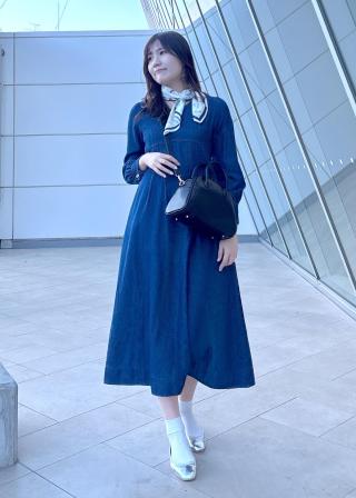 ・レディライクな袖付きワンピースを、デニム素材でほどよくカジュアルダウン。