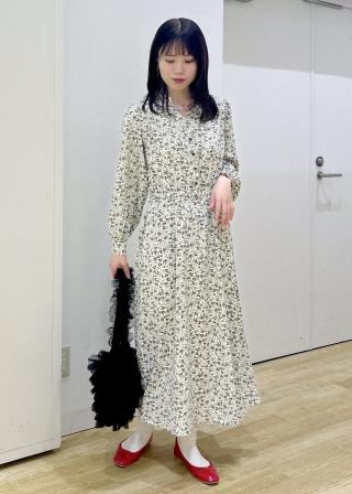 体型カバーをしつつすっきり。大人が取り入れやすい花柄ワンピース。