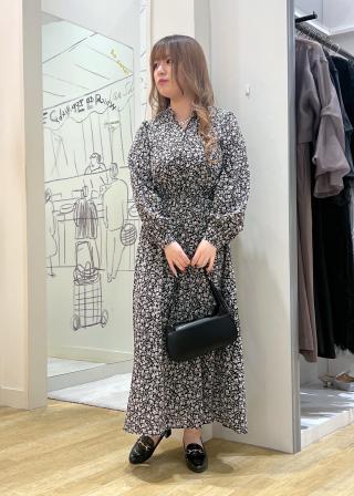 小花柄スキッパーロングワンピース