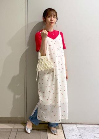 ・真夏はタンクトップやキャミソールとの重ね着が◎。