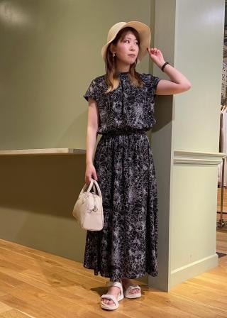 サイズ感:袖丈も肩が隠れるフレンチスリーブで、着丈は足首が見える長さです。