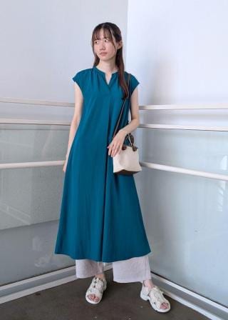 ・気になる肩部分をカバーし、暑い時期でも着やすいゼロスリーブ袖。