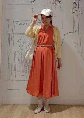 足元をすっきり見せたい方はベルトでウエストマークをして少しブラウジングするのが◎