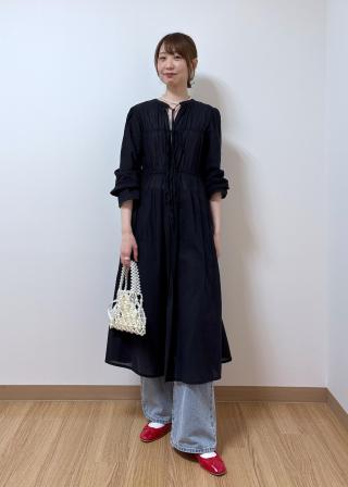 ・羽織りとしてデニムやTシャツと合わせたカジュアルスタイルから、ワンピースとしてリボンを結びフェミニンに着こなすことも可能。
