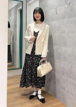 ・ブラックベースにオフの花柄を散りばめたカラーは、甘さを抑えたレトロな雰囲気が大人可愛いを叶える。