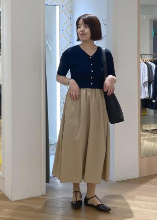 ・足元にパンプスやサンダルを合わせるだけで、お出かけやランチシーンに映える上品な装いが完成。