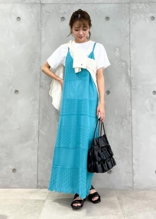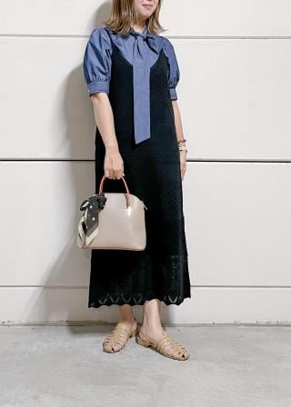 ・軽やかなワイドパンツやジーンズとレイヤードする着こなしもおすすめ。