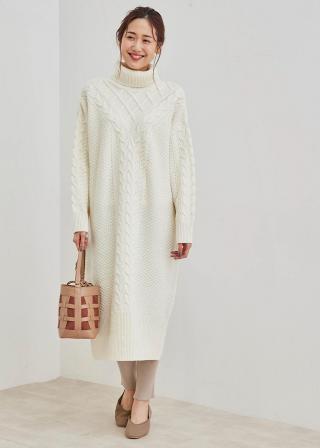 ・前後で異なる編み柄に仕上げたケーブル編みデザイン。