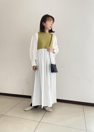 ・ニット使いで暖かみをプラスしたロングワンピース。