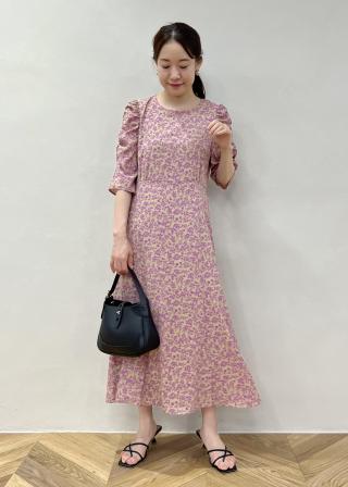 ・ロング丈のフラワープリントワンピース。