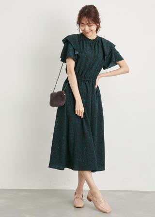 リンクコーデ/アソート柄ラッフルスリーブワンピース