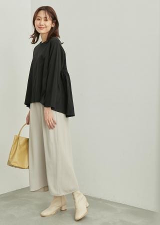 ・布帛のブラウスやタートルニットを合わせると大人っぽく仕上がる。