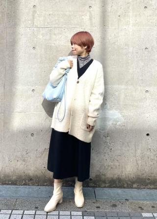 ・長めのミモレ丈は、ブーティーとのバランス感がおしゃれ。
