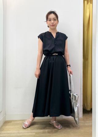 ストンと落ち感のある素材なので、自然なフレア感でフェミニン過ぎずスタイリングできます。