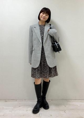 小花柄が可愛いティアードワンピースです。低身長の私だと膝丈になり、これからの季節はブーツ合わせが可愛い丈感です○