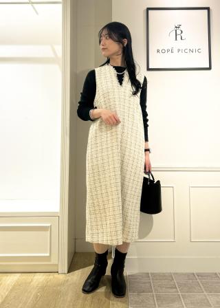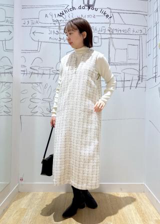 キーネックツイードジャンパースカート ワンピース/着丈が選べる