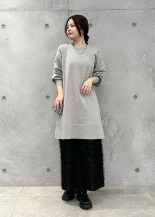 ・ヒップをカバーして着心地も暖かい、チュニック丈の長袖ニットワンピース。