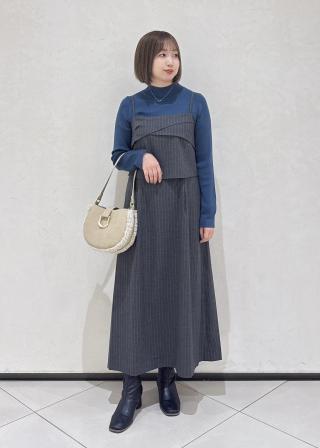 ・フロントにデザインポイントがあるのでジャケットやカーディガンのインナー合わせの際もコーディネートのポイントに。
