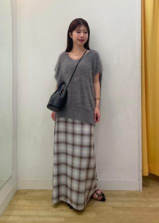 パッと目を引く大きめのチェック柄に一目惚れして購入。身長やコーデに合わせて丈を自由に変えられるから有難い。黒いロングジレとの組み合わせがお気に入り。