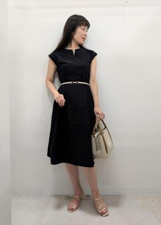 ・少し高めのウエスト位置とフィット&フレアシルエットで足長効果、スタイルアップ効果も◎。