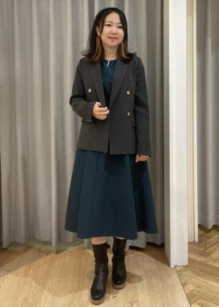 ・パンツとレイヤードすることでカジュアルダウンした着こなしも可能。