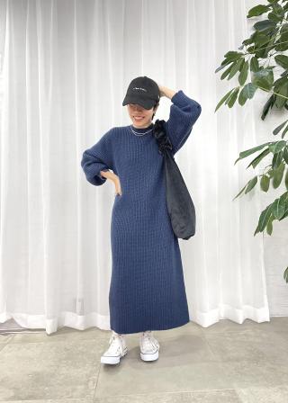 【WEB限定】袖ボリュームロングニットワンピース