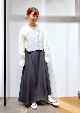・ブラウスは透け感を楽しめるシアー素材で、ギュッと袖口を絞ったキャンディスリーブがスウィート。