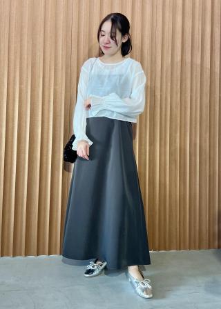 ・ブラウスは透け感を楽しめるシアー素材で、ギュッと袖口を絞ったキャンディスリーブがスウィート。