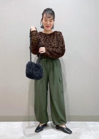 ・ウエストギャザーのイージーカーゴパンツ。