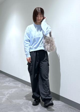 158センチの身長でしたらやや長めでしたが裾を絞めれば丈感も調整できました。ストンと落ちるシルエットが足をスッキリ見せてくれます。カーゴのデザインですが艶感がある素材なので綺麗目にも◎